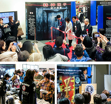 Det inleddes genom att hålla utställningen Psykiatri: Dödens industri vid Tokyos Bunkyo-kulturhus. En talare vid invigningen var dr Kenichi Kozu, ordförande för Förbundet för förebyggande och alternativ medicin, som framgångsrikt behandlar psykiska problem med en drogfri metod. Media uppmärksammade detta i de nationella tidningarna Asahi Shimbun och Mainichi och avslöjade kriminell psykiatrisk behandling.