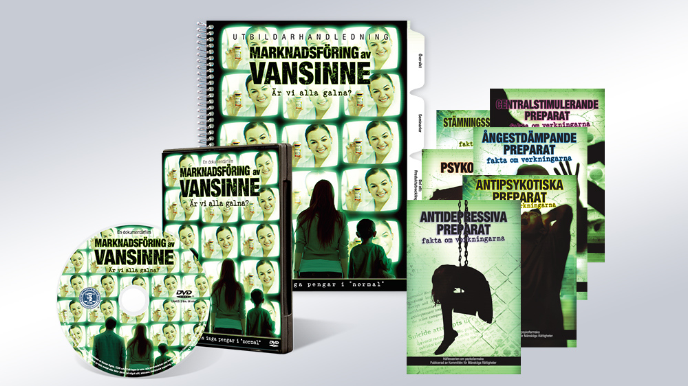 Svaren på dessa frågor och många andra är nyckeln till att förstå de många sociala missförhållanden som plågar världen idag. Bakom många av dem ligger ett partnerskap i mångmiljardklassen mellan psykiatrin och läkemedelsindustrin, som säljer ”sjukdom” för att kunna håva in pengar från dessa droger – vilket medför fara för människors hälsa och till och med deras liv. Undervisningspaketet Marknadsföring av vansinne ger dessa svar – liksom de sedan lång tid förtryckta lösningarna på psykiska störningar som psykiatriker inte vill att du ska känna till. Detta material innehåller information som är av största betydelse för att skydda individens rättigheter och få slut på psykiatrins kränkningar.